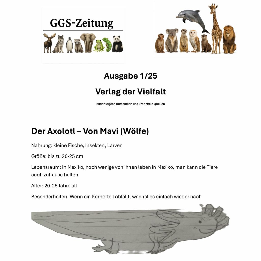 Die Kinder der GGS Rösrath präsentieren stolz ihre erste GGS-Zeitung – entstanden im Workshop „Schreibschmiede“ unter der Leitung von Herrn Sprenger.