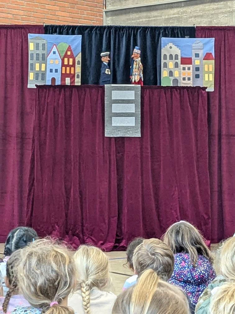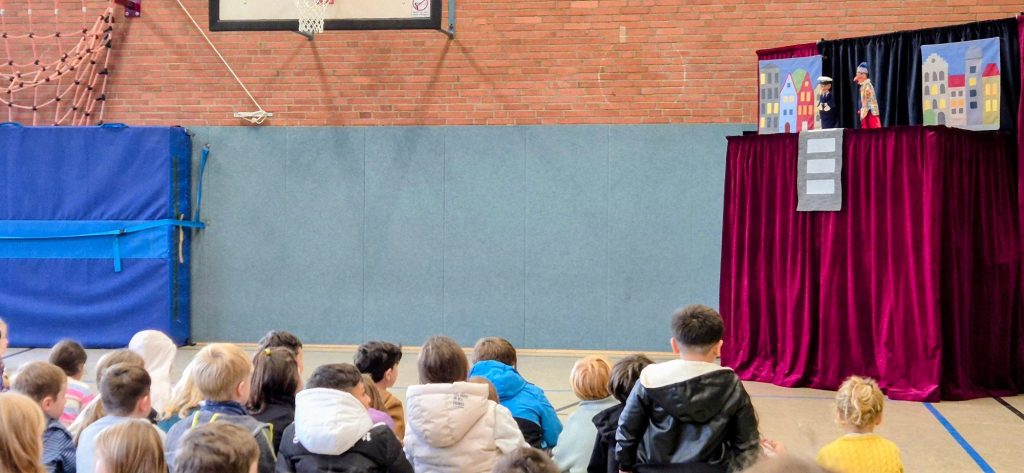 Auf eine sehr unterhaltsame Weise wurden die 1/2er von einem Puppenspieler aus Bergisch Gladbach auf die Gefahren des Straßenverkehrs vorbereitet.